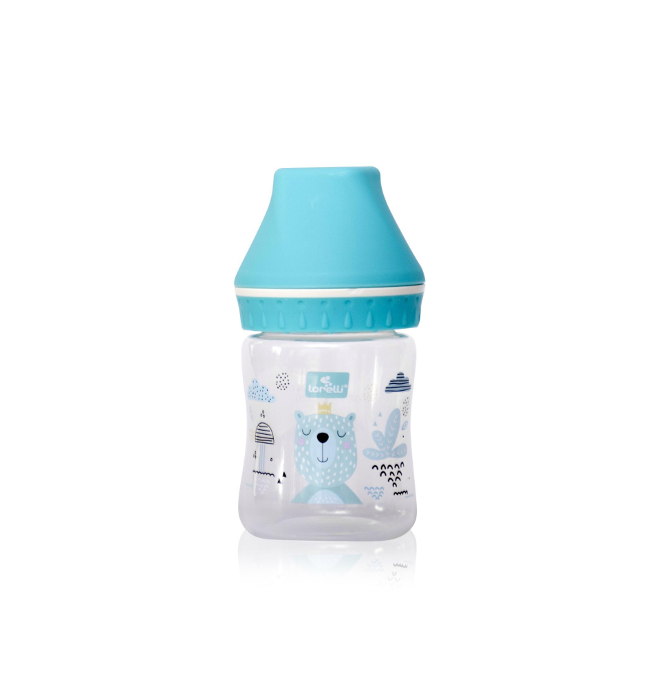 Biberon cu Gat Larg Gradat, Ergonomic Lorelli Baby Care My Friend Bottle, Tetina din Silicon, BPA Free, Capacitate: 125 ml, Culoare Albastru : 0 luni+
