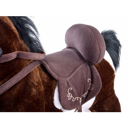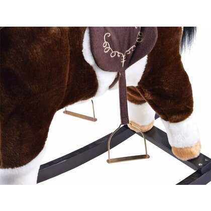 🐴 Acest balansoar din plus maro-alb nu este doar superb, dar scoate și sunete: nechează, galopează și chiar își mișcă gura!