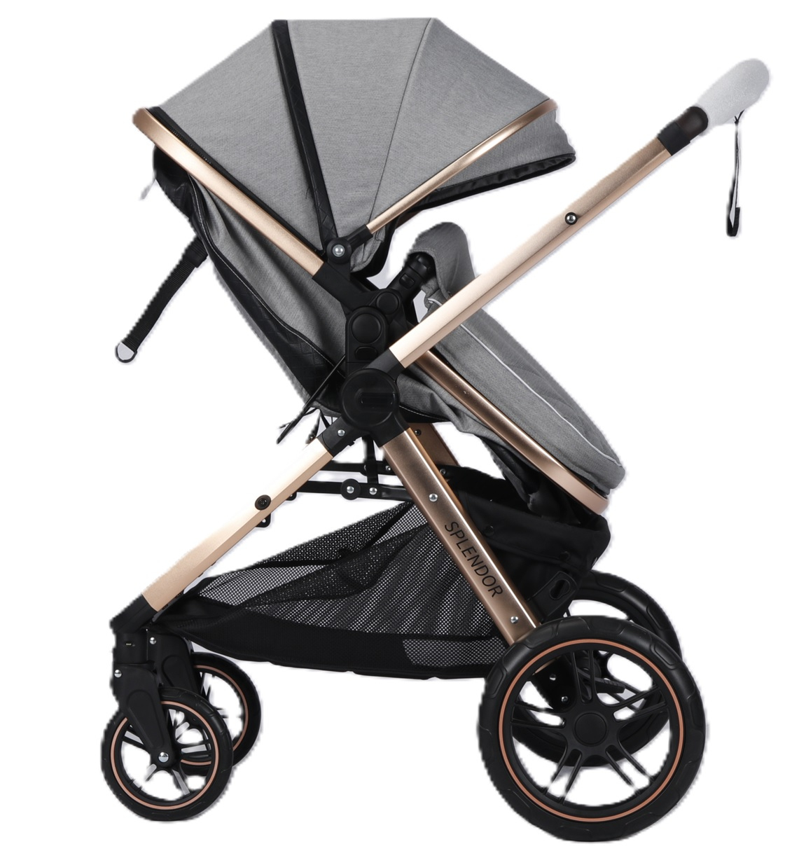 Carucior Multifunctional pentru Bebelusi - 2 in 1, Suspensii, Roti Rezistente, Maner Reversibil, Parasolar, ROYAL SPX3 - Culoare Gri Deschis