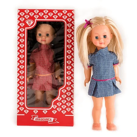 Papusa din gama Aradeanca, realizata din cauciuc gros pentru copii. Are inaltimea de aproximativ 50 de cm. Papusa este realizat pentru a sta singura in picioare, i se pot misca mainele si picioarele si isi inchide ochii cand este lasata pe spate. Culoarea parului este blond