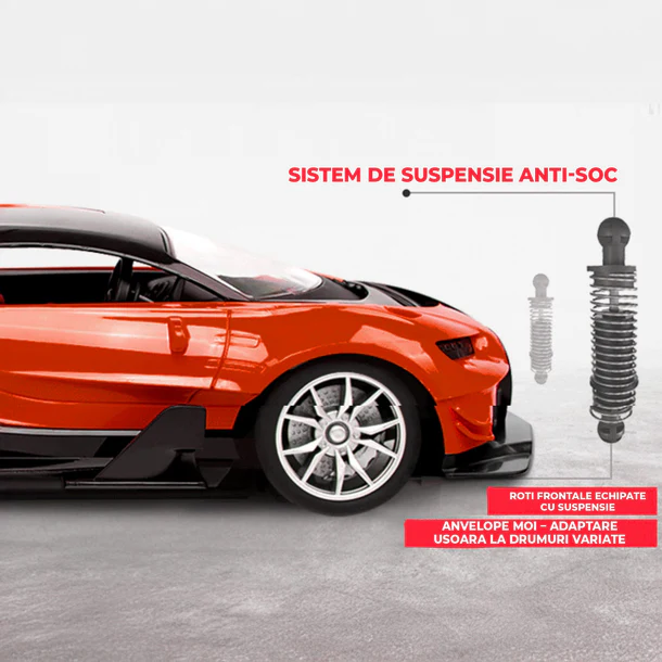 • Design sport inspirat din supercaruri la scară 1:16, cu caroserie ușoară și aerodinamică pentru drifturi controlate.