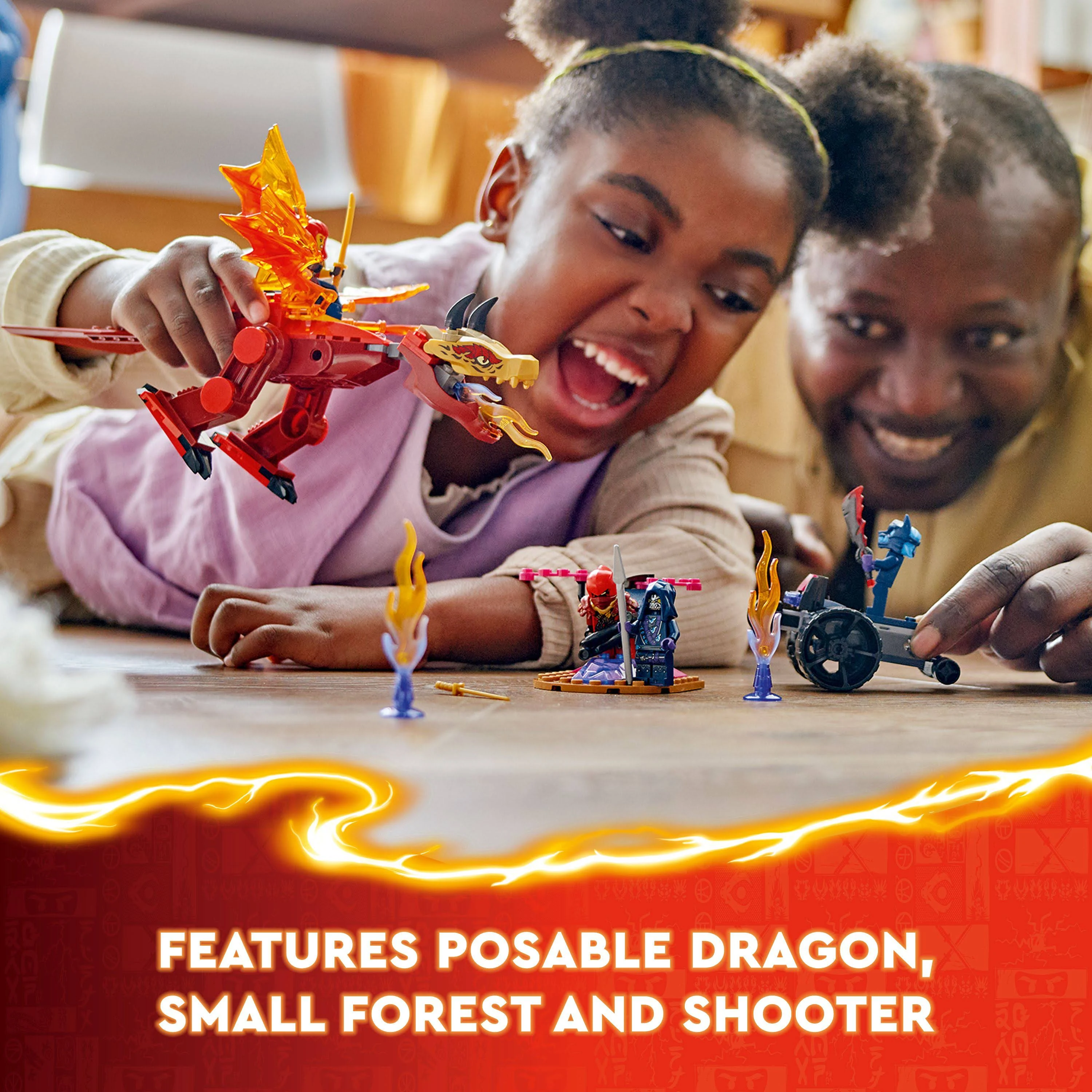 Micii constructori se pot bucura de ore întregi de joacă în timp ce recreează povești din sezonul 2 al show-ului TV NINJAGO® Dragons Rising.